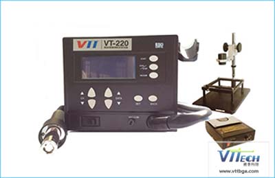 热风枪是根据发热电阻丝的枪芯吹出的热风加热原理对损坏服务器主板芯片进行焊接与拆取的返修工具。工人在操作过程中可以依照显示屏上显示的温度来手动调节温度信号放大电路、比较电路、可控硅控制电路、传感器、风控电路等来显示电路显示的温度,操作方便,但是返修良率偏低一般EMS大厂不会选择这种工具。